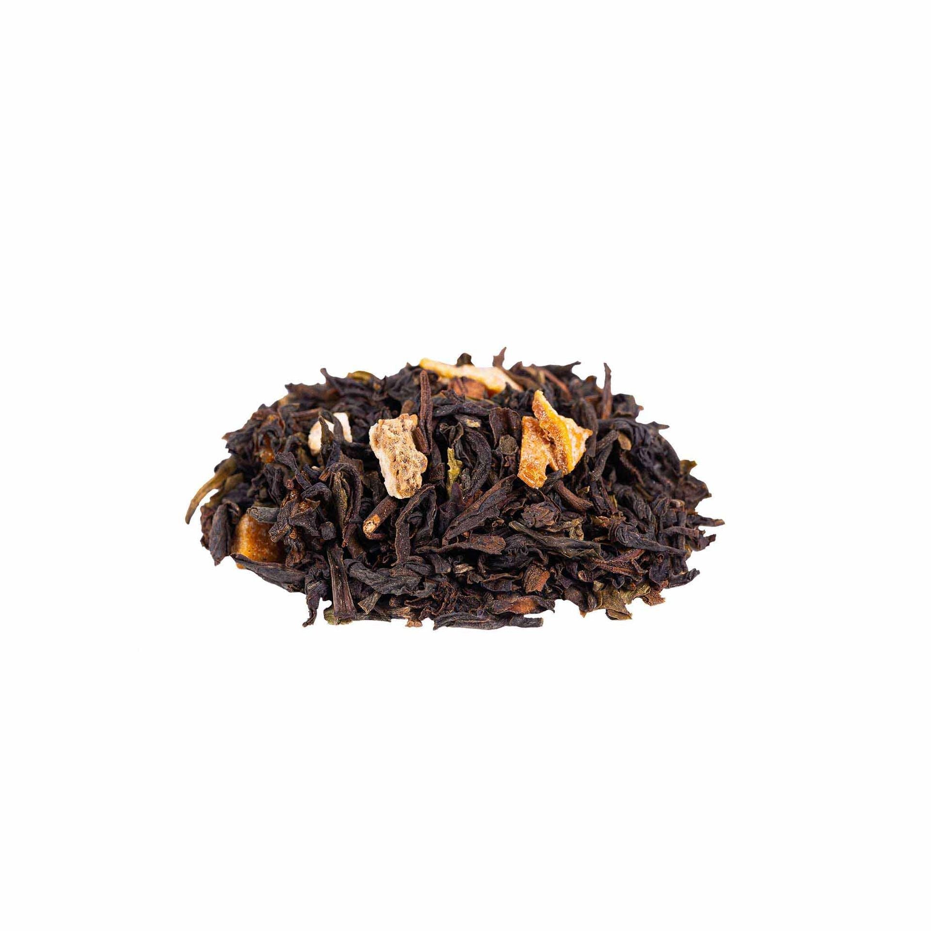 Цейлонский чай OP, финики (финики, рисовая мука), лемонграсс, манго (12%), черный перец, лимонная цедра (5%), кусочки лимона (3%), палочки корицы, анис звёздчатый, кардамон